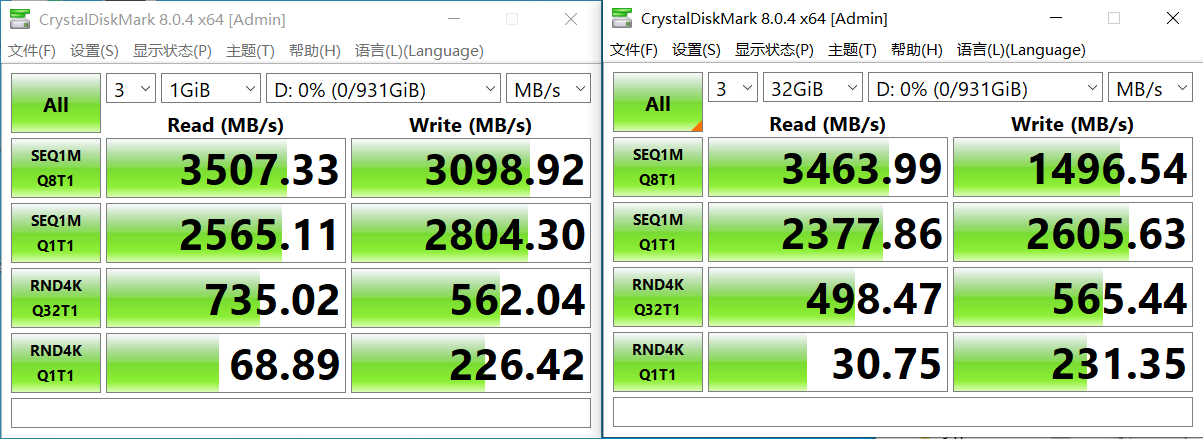 其他方面两个数据量之间差异较小,4K读取方面长时间大数据量的读取也有些扛不住。