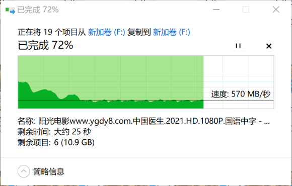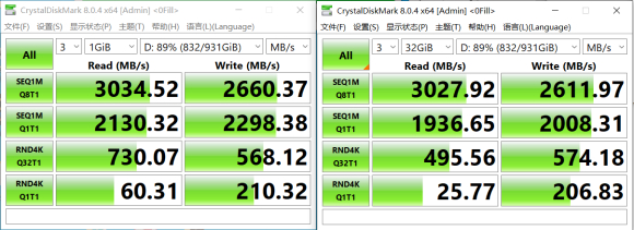 硬盘剩余空间较低对于固态性能发挥还是有比较明显的影响。