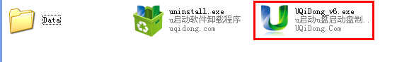 如上图所示,红色框内的“UQiDong_v6.exe”则为u启动主程序,我们只需双击即可开始使用u启动软件了。