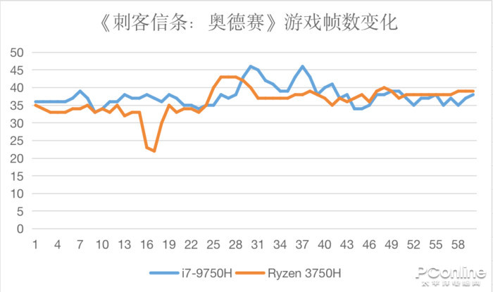 就算拿英特尔家降低了几档的i7-9750H来进行对比,同显卡配置下,因为英特尔的CPU处理器性能更好,所以游戏体验上英特尔机型也要好很多。