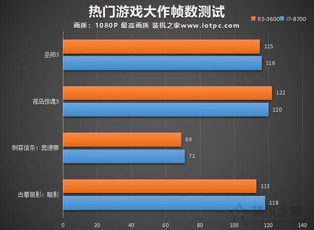 我们在带来一下游戏实测,来看看两款CPU在游戏中的帧数差异,游戏设置为最高画质,分辨率为1920*1080(1080P),刷新率为60hz,游戏选了《巫师3》、《孤岛惊魂5》、《刺客信条:奥德赛》、《古墓丽影:暗影》,来看看具体的测试成绩吧。