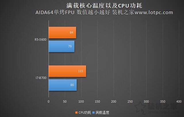 得益于7纳米制程工艺的优势,R5-3600 FPU拷机温度才79度,而功耗仅仅84W,而i7-8700温度达86度,而CPU功耗为115W。