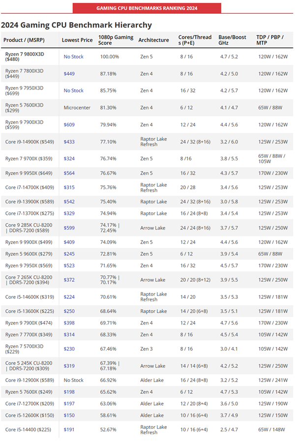 2025年最全CPU性能排行!锐龙7 9800X3D断崖式遥遥领先