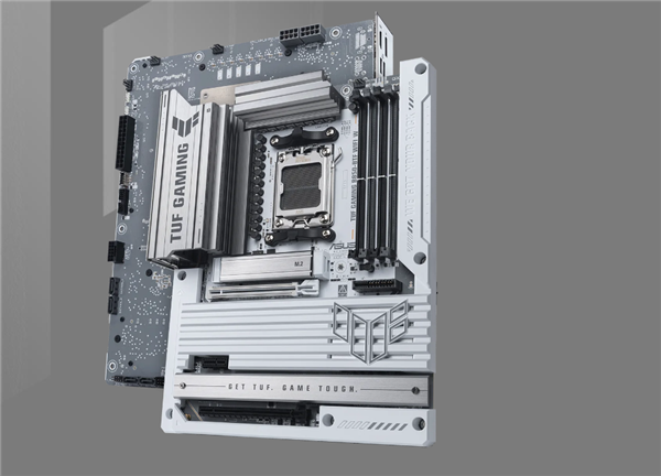 快科技3月28日消息,华硕低调推出了采用背插设计的“TUF GAMING B850-BTF WIFI W”主板,不但是B850的第一次,事实上也是华硕的第一款AMD平台背插主板。该主板的供电、硬盘、输入输出、风扇等接口都设置在背面,因此正面非常简洁,再加上白色风格,装机颜值妥妥的在线。