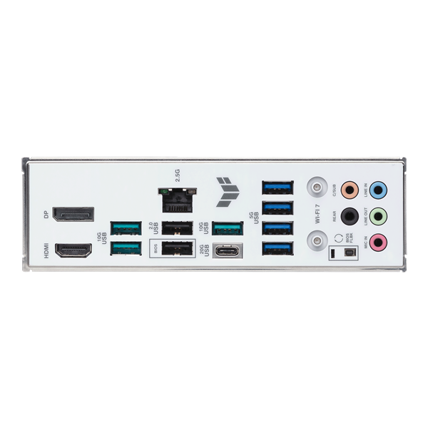 该主板还升级了Q-Release Slim显卡易拆装设计,取消了金属挡板,避免可能对显卡金手指造成磨损。后续的B850、X870主板都会如此。其他方面,这块板子还有14+2+1相供电(每路80A电流)、DDR5 8000+MT/s内存频率、三个M.2接口(其一支持PCIe 5.0)、后置USB-C 20Gbps和前置USB-C 10Gbps、Wi-Fi 7无线网口和2.5G有线网卡、ALC1220P声卡,等等。