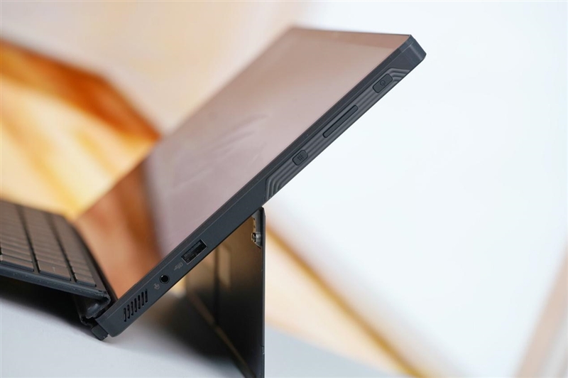 机身右侧有电源按钮、音量按钮、一个10Gbps USB 3.2 Gen2接口和一个3.5mm的耳麦合一接口。
