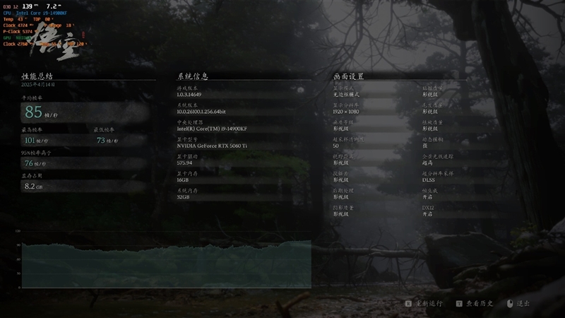 在《黑神话·悟空》中,影视级画质进行测试,使用DLSS超分辨率,采样精度50,启用帧生成功能,4K测试平均帧率为41,2K测试平均帧率为66,1080P测试平均帧率为84。