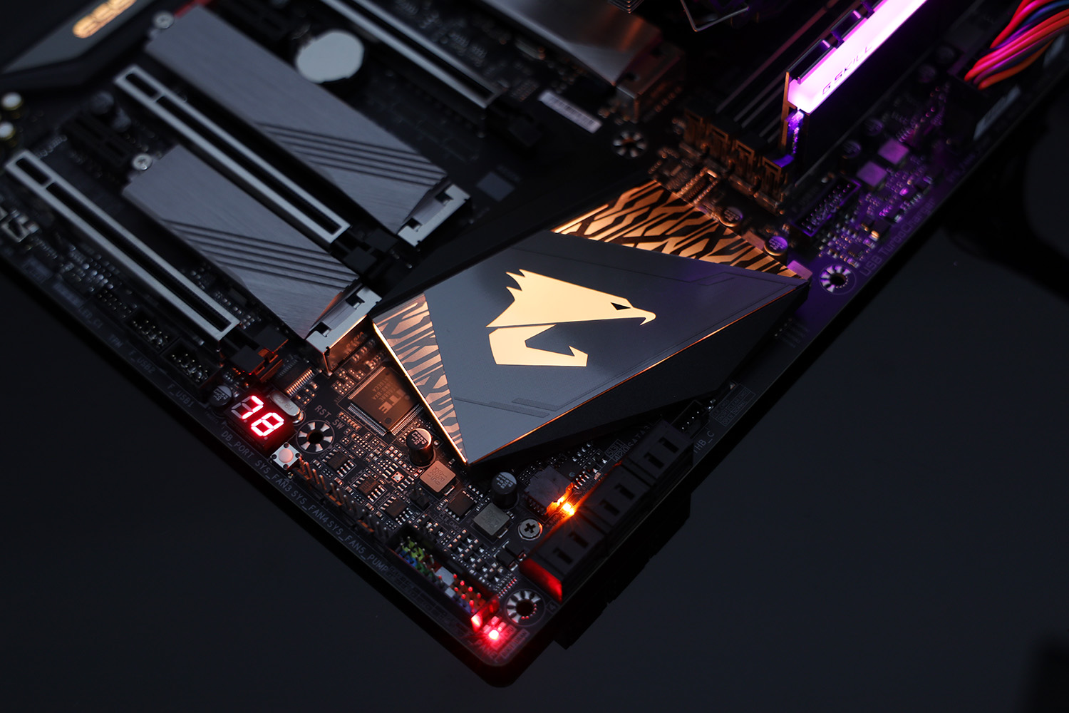 南桥散热装甲的雕头十分醒目,说明这是AORUS出品